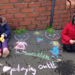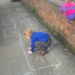 Part of promoting Playing Out in my local area is to get people to think differently about the space outside their front door. I approached our local infant school with a few ideas. They were very welcoming and supportive, and I came up with the idea of the Chalk Challenge.