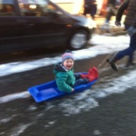 After it snowed in the Winter temperatures remained low, so when we had Playing Out there was still ice on the ground. Kids had sleigh rides and an ‘ice’ dam was built, all without the adults showing or telling them what to do. We also started the year being pirates! I asked people to keep cardboard boxes from Christmas to use for a pirate ship. The ship was built, ran into some difficulties, was shipwrecked, and smaller life boats were then built. It was great fun!